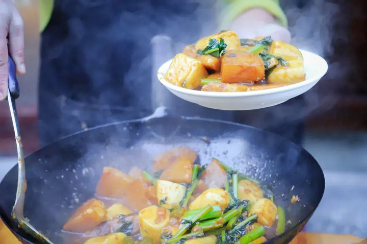 傳統的魅力,就在於那口不變的老底子味道。在慈城,像馮恒大一樣的年糕品牌還有許多,比如塔牌、義茂、綠藤,坐實了慈城“年糕之鄉”的稱號。在慈城火神廟旁還有一座年糕博物館,你可以親身體驗搗年糕的過程。