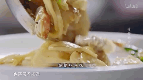 把白蟹和年糕搭配一起是最經典的↑蟹炒年糕吃法。水磨年糕軟彈香糯,吸了螃蟹的鮮同時又保留米香,一上桌立馬被夾光。