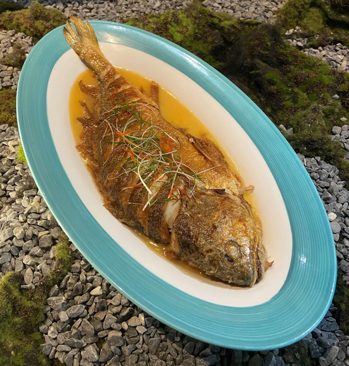 肥美的黃魚用香料醃製,用心把握火候使兩面煎製金黃,佐以濃湯收汁,好菜口感細嫩,口味鮮美。桌上有魚,吃的到位~
