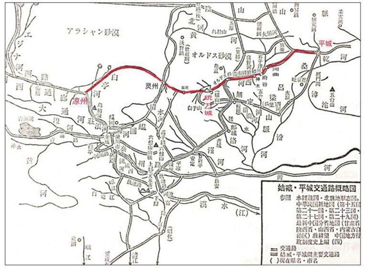 以平城為中心,北魏時期的絲綢之路共分三條道路通往西域。最主要的一條道路沿著雲岡東側到左雲,進入殺虎口到盛樂、呼和浩特,繼而到天水到武威(涼州),最後出敦煌進新疆南北路。第二條路從平城出發沿著蘭州道直達運城,過風陵渡到西安,到西安後沿著西漢時期的道路走。第三條道路由平城向東經過集寧,一路西行至呼和浩特,經過武川、固陽、固原到天水,接上一段草原絲綢之路。