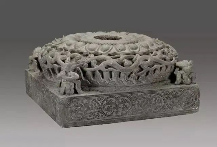 除了雲岡石窟外,大同與絲綢之路有關的文化遺存十分豐富,比如出土的金銀銅器、玻璃器、波斯銀幣、珠寶等。1970年,大同出土的八曲銀洗、刻花銀碗、鎏金高足銅杯等器物紋飾,均為典型的西方紋飾,彰顯出中亞藝術風格。司馬金龍墓出土的方形石雕柱礎,從紋飾看也是絲路西來之物。還有與大同相鄰的呼和浩特修水庫出土的人骨、金幣以及高足銀杯,也是東羅馬的產物。