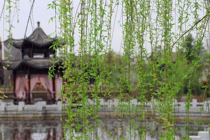 萬木乍醒之時,古鎮湖堤邊春柳抽出萬縷千絲,或搖曳於淡雲疏雨間,或飄搖在樹影微光裡,好似綠霧般柔美動人。