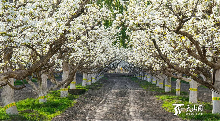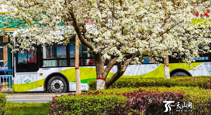 梨城主幹道,香梨樹整齊生長在綠化帶間,花開時花香四溢,猶如徜徉花海,一路路梨花讓你驚豔不已。