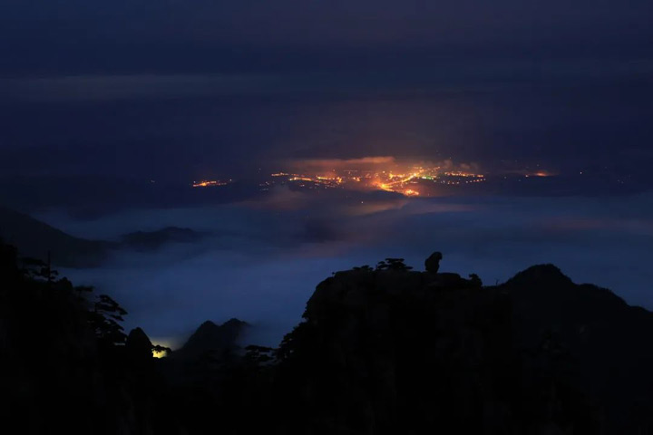 夜晚的黃山也是攝影愛好者不能錯過的,星星閃爍在藍絲絨的天幕裡,萬籟俱寂,夜幕低垂。打開廣角信手一拍,捕捉大自然光影的奇妙。