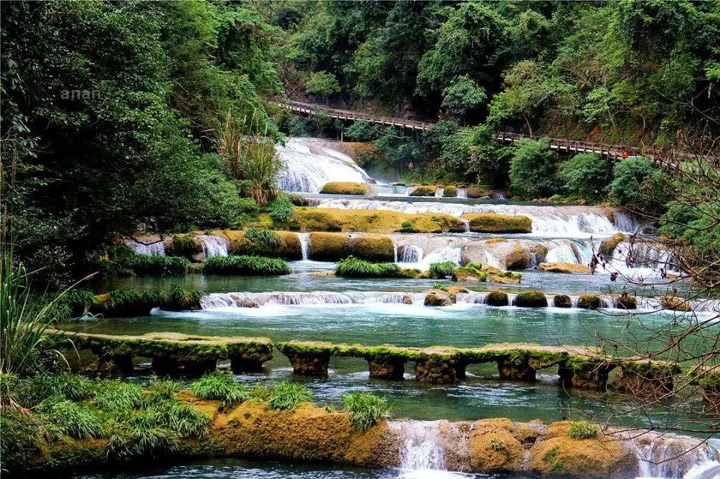 荔波小七孔景區集洞、林、湖、瀑、石、水等多種景觀為一體,玲瓏娟秀,透著貴州春天最獨特的秀麗風情。