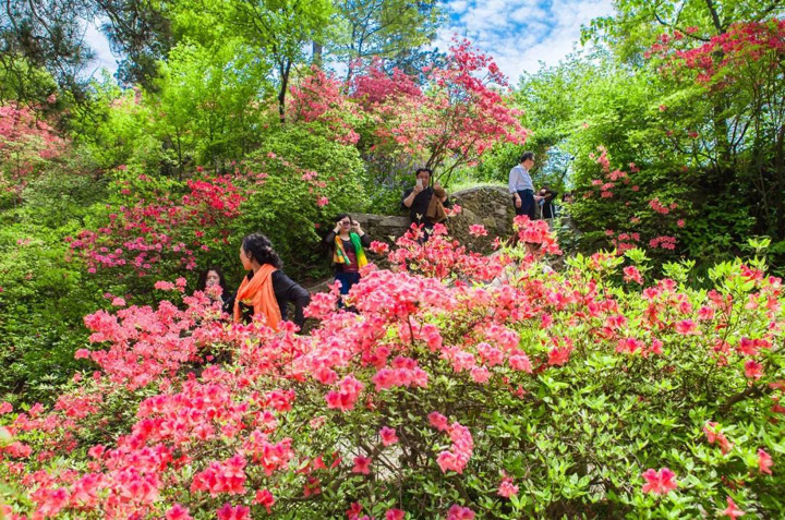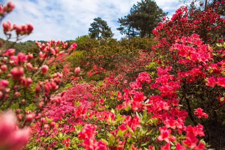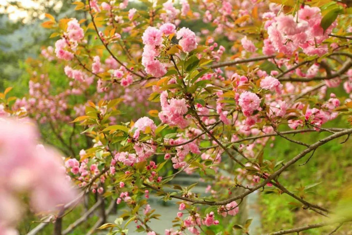 清涼寨位於武漢市黃陂區,山間林木浩瀚,森林覆蓋率高達98%。春天的清涼寨,早櫻、晚櫻、二月蘭、白杜鵑、映山紅......相繼盛開。杜鵑花巍然挺立、蔚為壯觀,晚櫻白的像雪、粉的像霞、如雲似霧,一路山花笑爛漫。