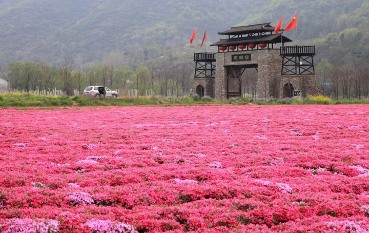 春秋寨“負陰抱陽”、“枕山面屏環水”,集“雄、險、秀、奇”於一體,不僅文化底蘊深厚,自然環境也是相當優美。春天,百餘畝芝櫻花覆蓋了景區入口的大片區域,一朵朵、一簇簇、一叢叢,驚豔綻放、極致絢爛,如同“地上彩虹”,漫步其中心曠神怡。