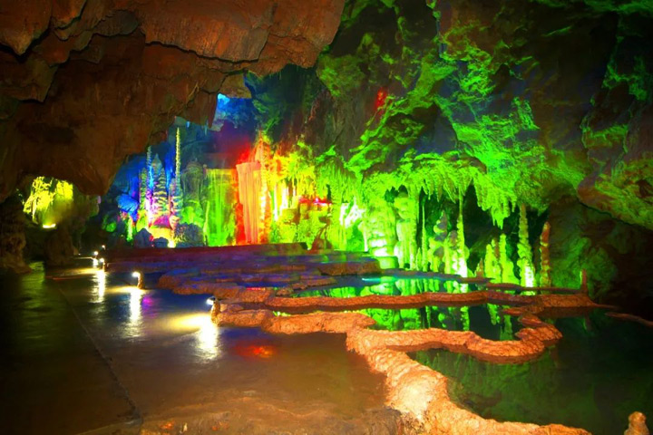野人洞是一個多徑洞口,洞內藏山、山中有洞,現已探明洞深1200多公尺,面積為15400平方公尺。洞分上下兩層,內有三廳四宮,擁有數百處鐘乳奇觀,洞中泉水潺潺,四季長流,奇石映水,色彩各異,掛瀑、水簾、龍潭、水滴金盆等,無不使人稱奇讚絕。