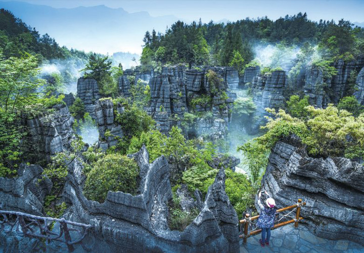 梭布埡石林,有著“世界第一奧陶紀石林”的盛名,位於恩施市太陽河鄉境內,遠遠望去,石林的外形就像一個巨大的葫蘆,四周翠屏環繞,神秘原始。在土家語中,梭布埡是“三個埡”的意思,它們平均海拔900多公尺,走在石林中,狹縫秘境、化石古跡隨處可見。