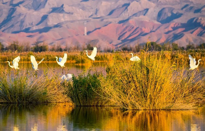 每年3、4月及9、10月下旬,多達180種候鳥在此停留,每到觀鳥旺季,各種鳥類在蘆葦蕩中時隱時現,或是擦著水面飛過。