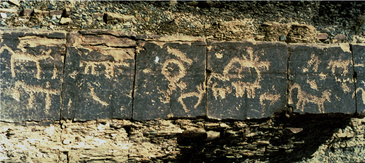 賀蘭山與馬還有一層“緣分”,這緣分就藏在賀蘭山聞名遐邇的岩畫中。賀蘭山的岩畫,從舊石器晚期開始刻畫,至西夏時期才告終止,岩畫中有關“馬”的圖案有123處,獨馬、群馬、牽馬、牧馬等圖案比比皆是,它們似乎在告訴人們,賀蘭山與馬的關係密切而深遠。