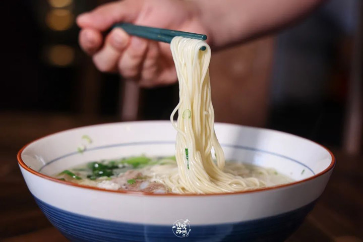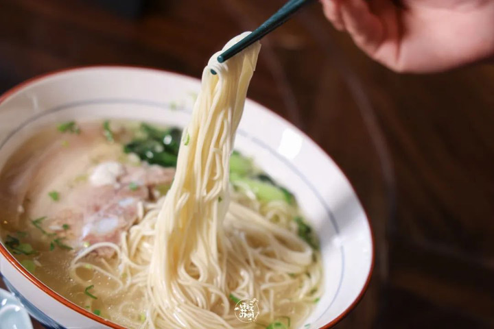 蘇虞齋的楓鎮大肉麵製作技藝,是由蘇州知名麵館同得興的肖偉民大師傳授的。
