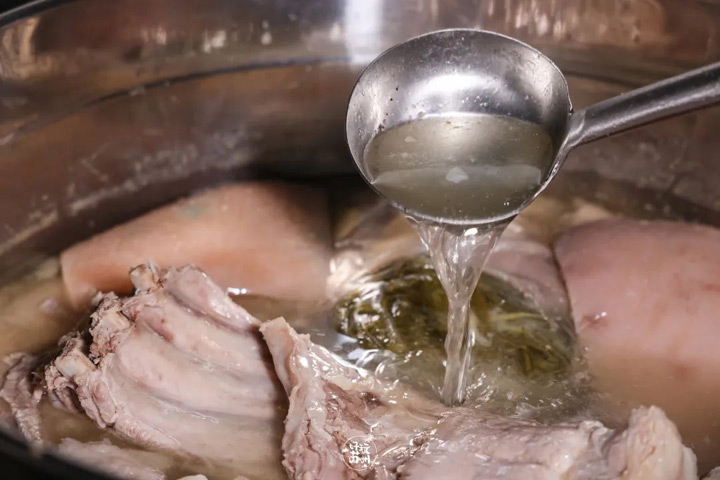 待肉徹底冷卻後,放入冰箱冷藏,使其凝固成形。用時切成厚薄均勻的塊,便可和麵條一起上桌了。