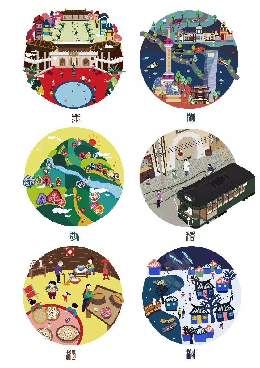 作品的靈感來源於上海的金山農民畫,將金山農民畫與現代元素相結合,根據上海老居民的傳統生活和風俗習慣設計了12張插畫,分別是一年的十二個月。一月送灶神、貼春聯、舞火龍。二月除夕、祭祖、守歲,喜迎新春放開門鞭炮。九月登高,十一月磨米粉、蒸花糕,饋送親友。