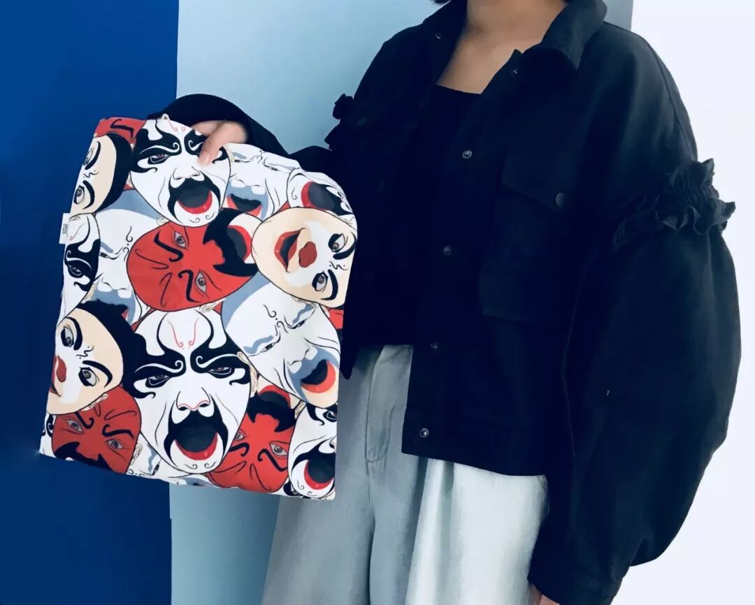 並且依據這樣一系列崑曲人物造型設計了系列平面衍生品,例如明信片、馬克杯、帆布包。