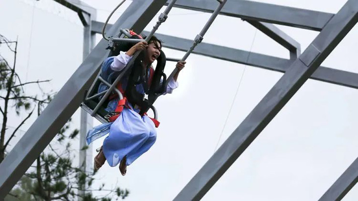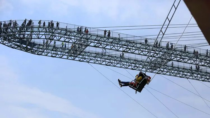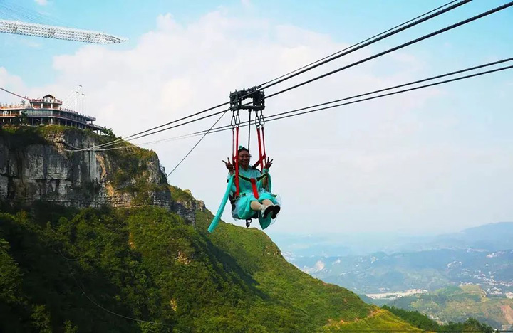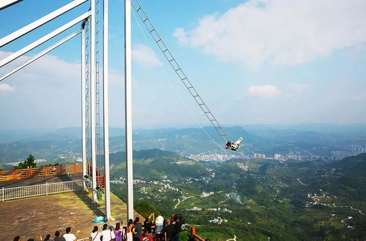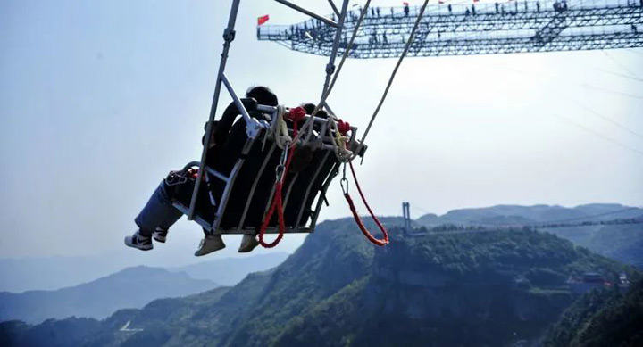 仙人街懸崖鞦韆位於玻璃觀光台山崖上,秋千有十五公尺、二十公尺高等三條不同高度可供選擇。山崖高度加上鞦韆高度,蕩到最高點的時候,距離崖底有550公尺之高!長長的鞦韆瞬間向懸崖外蕩去,帶給人以刺激、心曠神怡的感覺。