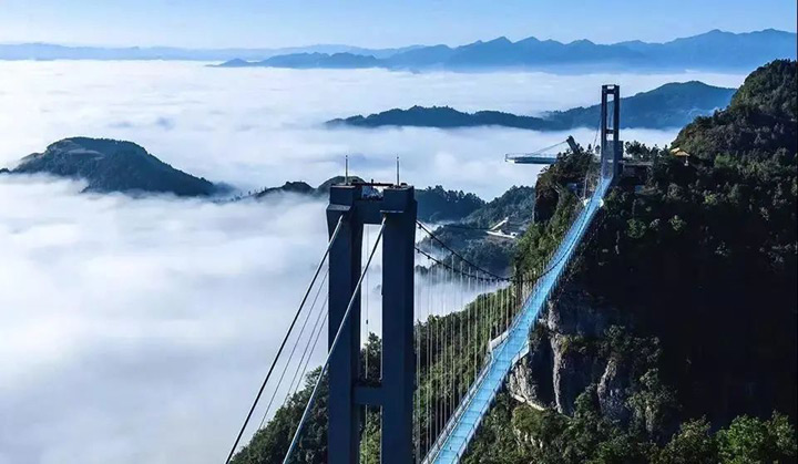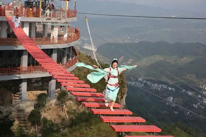 仙人出海項目是世界上最長的懸挑空中玻璃走廊,榮獲金氏世界紀錄。懸空於550公尺高的懸崖峭壁之上,整體由山體伸出直線長達230公尺、懸挑91.8公尺,置身其中,震撼而刺激,人在走,廊在抖…