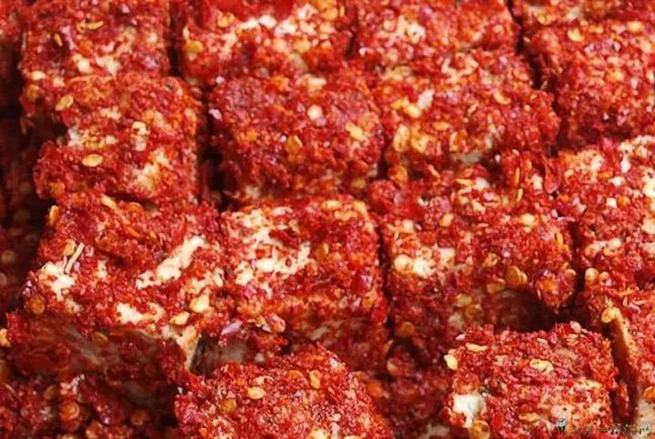石阡豆腐乳是以大豆為原料經過石磨加工製成水豆腐,在其獨有的氣候條件發酵儲藏之後,以白酒、食鹽、辣椒、花椒等佐料加工而成。釀造出的豆腐乳質地細膩、入口即化,回味悠長,風味獨佳。