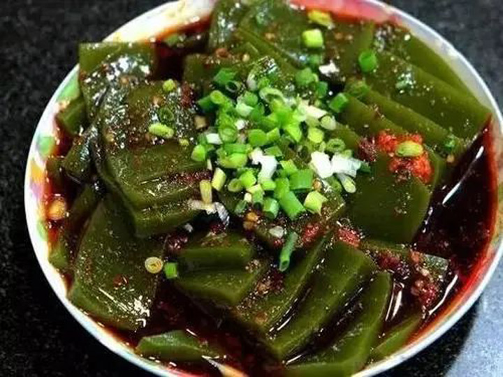 當地飲食中富有特色的傳統小吃。色澤淡雅、清香味濃,口感舒適的茶韻, 其色如翡翠,呈半透明固體。有退火,清涼解毒之功效,適宜夏季食用
