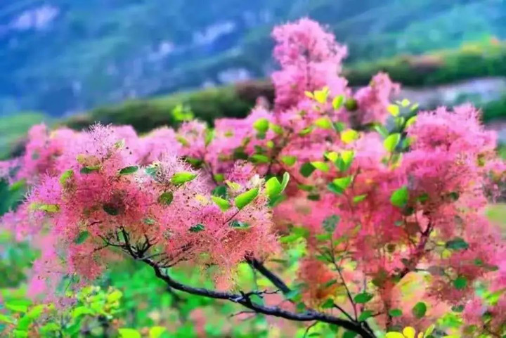 幾乎都藏在坡峰嶺粉紅的花海裏了
