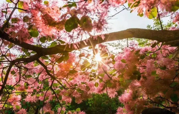 在粉紅的千畝山林間