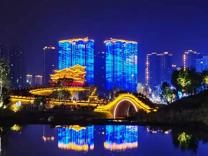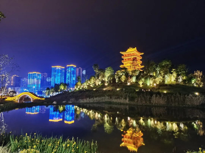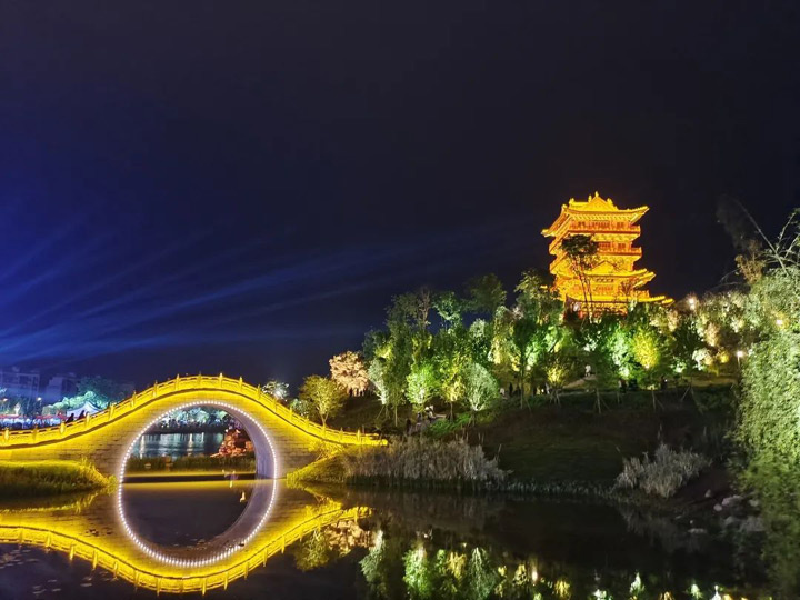 在香國公園和昌州古城,古城、古樓與景觀水系自然融合,