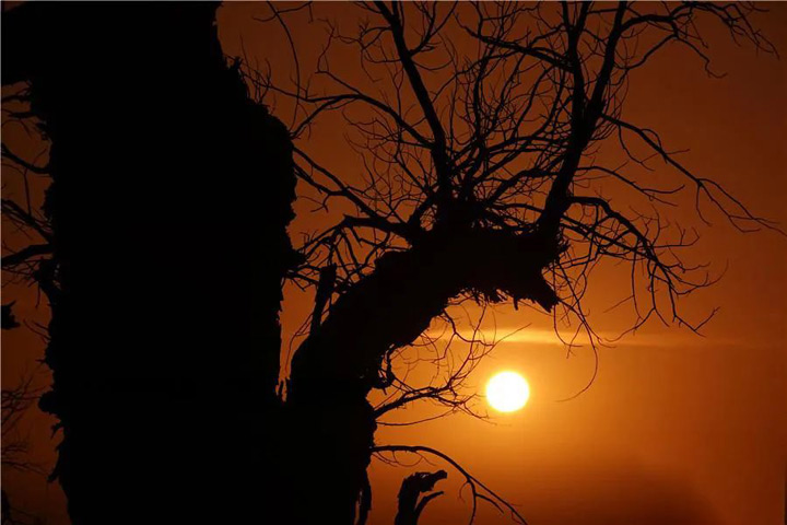 塔里木胡楊伸展枝條迎接的朝霞