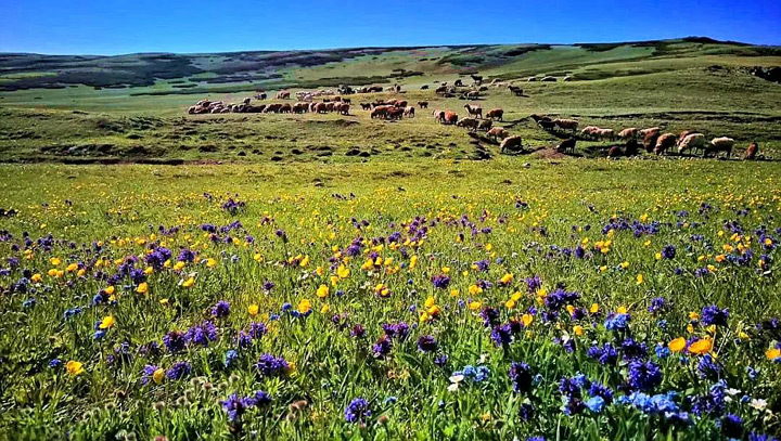 與山花共舞的喀拉峻草原