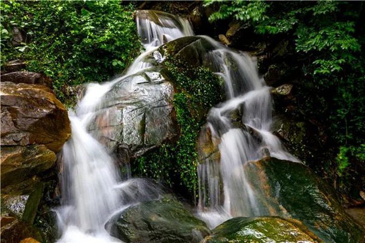 山中濃密的樹木綠意盎然,野花點綴明亮而又鮮美。