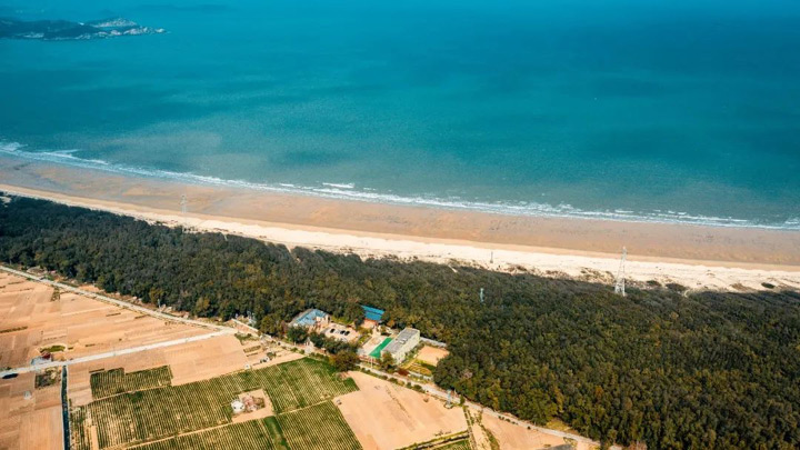在泉州市惠安縣淨峰鎮東海的惠女灣,起淨峰墩北村上廳海邊止湖街村前申湖海邊,總共有14多公里長的海岸線。一片寬闊鑲綴金黃的沙灘,蔚藍色的大海,深綠木麻黃的樹林淨峰林場,組成這片美麗的淨峰惠女灣,航拍飛過簡直太美了。