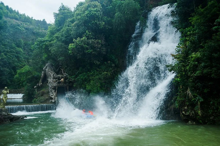 峽谷雨林漂流區全長5000公尺,總落差近三百公尺,共設46條滑道,6條極速落差滑道,49座攔水壩,51個水潭。高灘大跌、石岩無數,可謂是刺激、驚險。兩岸是青崖疊翠,群峰夾峙,灘多水急,跌宕相逢,怪石叢生,堪稱“華南第一漂”。