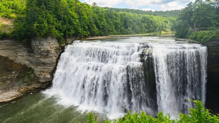"奔騰的河水自70多公尺高的懸崖絕壁上飛流直瀉犀牛潭, 發出震天巨響,如千人擊鼓,萬馬奔騰,聲似雷鳴,遠震數里之外,使遊人驚心動魄。