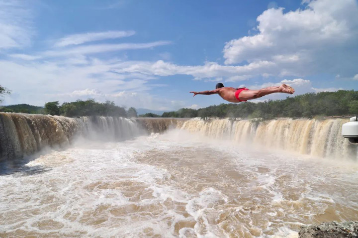站在鏡泊湖吊水樓瀑布旁,不僅可以欣賞到波瀾壯闊的瀑布美景,還可以觀賞“瀑布飛人”帶來的跳水表演。