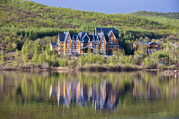 天長湖周圍群山環繞,早晚雲霧繞山,高密度的負氧離子、身在其中便有幾份詩意!景區內,歐式木質建築彰顯著獨特的風格 ,住在木屋裡,周圍的翠綠與湖相接,湖與天一色,連夢境都會是美輪美奐的。