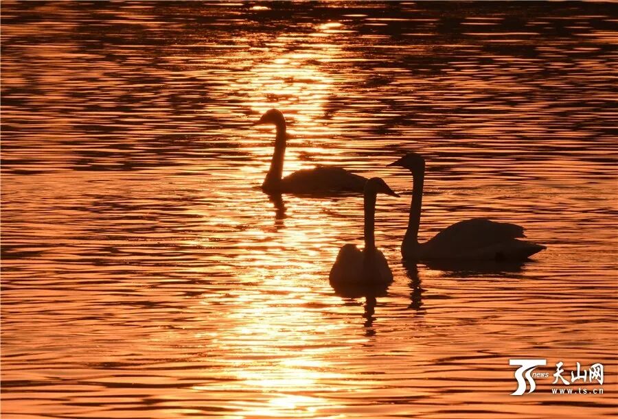 看看振翅高飛相互依偎的天鵝