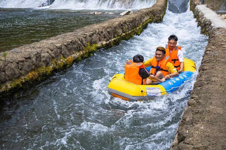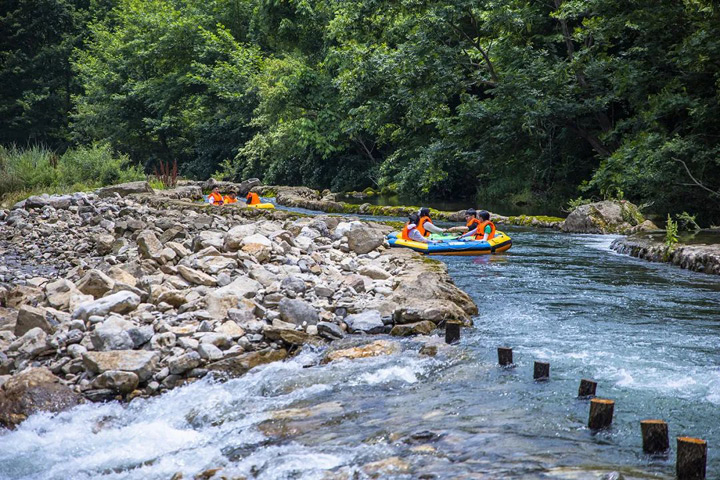 漂流全程8公里,峽谷幽深奇峻,蜿蜒曲折。清澈的河水在兩岸夾峙的山谷中奔流而下,橡皮艇時而在急流中飛速前進,時而在河面上輕輕飄過,驚險刺激,讓人心涼而又熱,尖叫聲響徹兩岸……