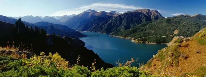 新疆天山天池風景名勝區,是西北乾旱地區典型的山嶽型自然景觀,是歐亞大陸腹地乾旱區自然景觀的代表。
