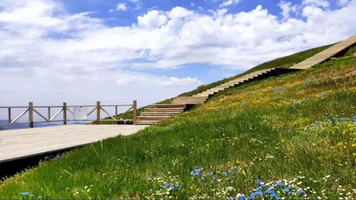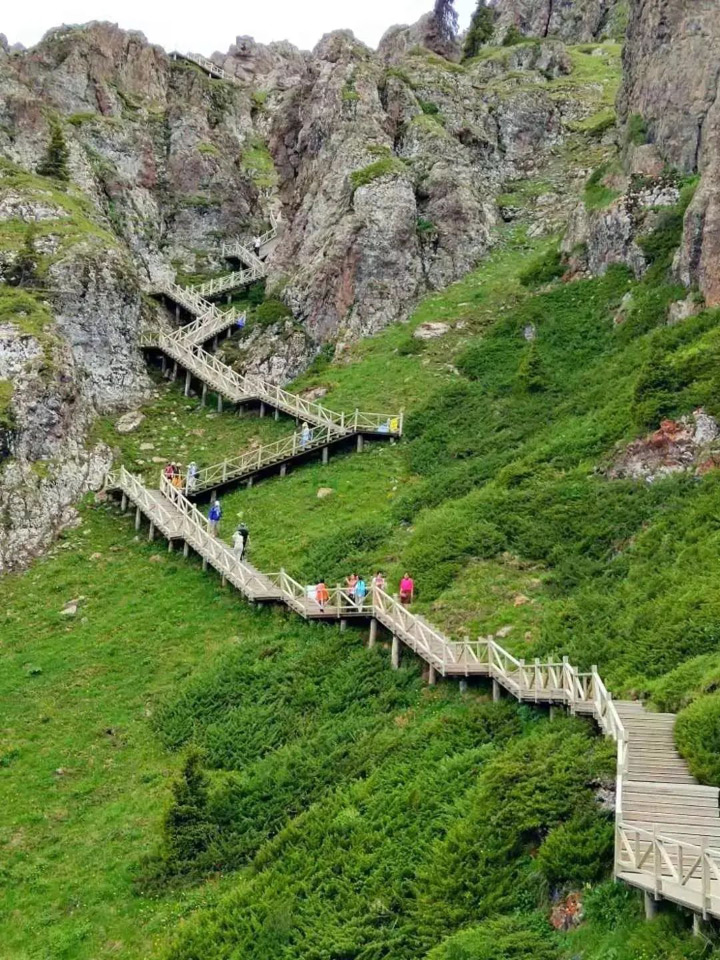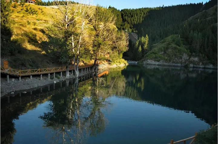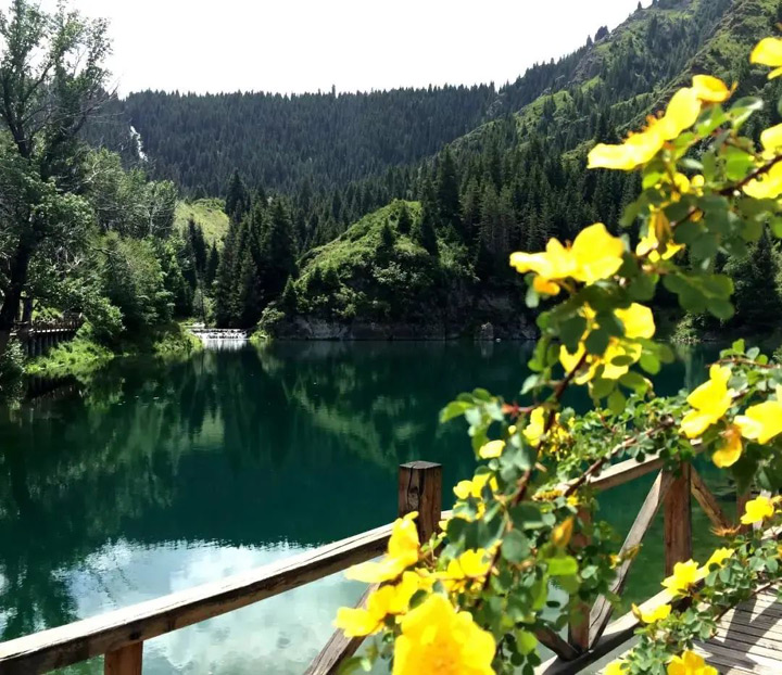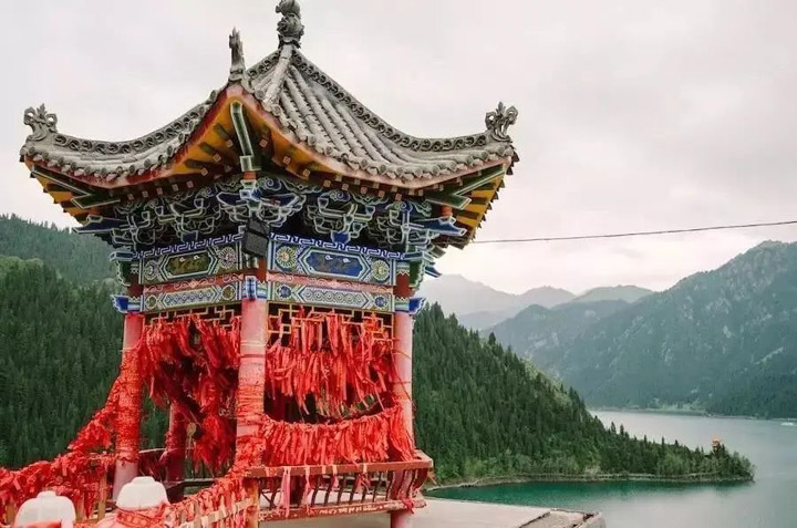 天山天池的夏天是五顏六色的,紅的、黃的、綠的各種顏色像是一朵朵碩大的花朵般爭相盛開。行走在池邊的木棧道,看到的就是大自然無與倫比的美麗。