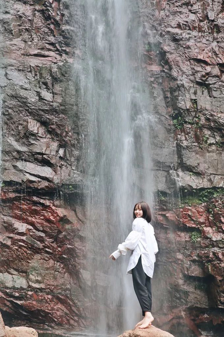 在泰順大大小小的瀑布群裡,紅岩雙瀑大概就是最知名的一處。雨量大的時候,兩條瀑布從幾十公尺的高空傾瀉而下,匯聚合一。雖不及廬山“飛流直下三千尺,疑似銀河落九天”的壯闊,但也另有一番“溪澗豈能留得住,終歸大海作波濤”的豪情。