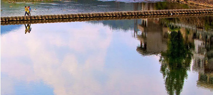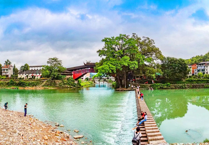 在無數人印象中,橋總是蜿蜒曲折才更添韻味,可是泰順這座133公尺長的仕水碇步橋卻是與眾不同,只是筆直地連接著兩岸。高一級是白色花崗石,低一級則為青石,遠遠望去,猶如一溜鋼琴琴鍵,因此被已故著名導演謝晉稱為“琴橋”。曲折固然有深意,平直夢亦長。