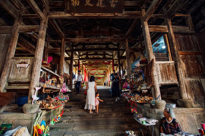 “姐妹”廊橋在當地人心裡不僅是簡單的交通工具,更是一個社交娛樂的場所。北澗橋上一個個分割均勻的攤位,形成一條小小的店鋪街。逛累了,也可以在廊橋邊的小茶館坐坐,品一杯地道的泰順“廊橋紅”茶,消磨一整個下午。
