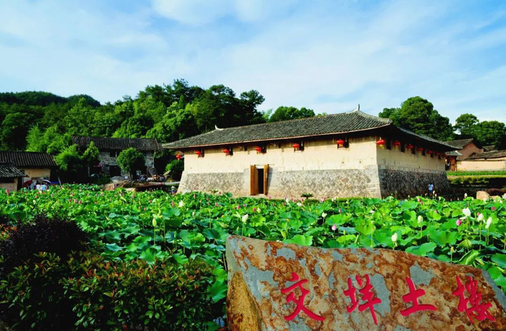 交垟村有一座保存完好的曾氏土樓,這是典型的客家方形土樓,在浙江省並不多見。每到7月,土樓前大片的荷塘便驚豔了整個夏天,粉色的荷花在綠色荷葉的襯托下,顯得格外嬌豔美麗。多少人停下腳步,只為一睹荷蓮吐露的芳澤。