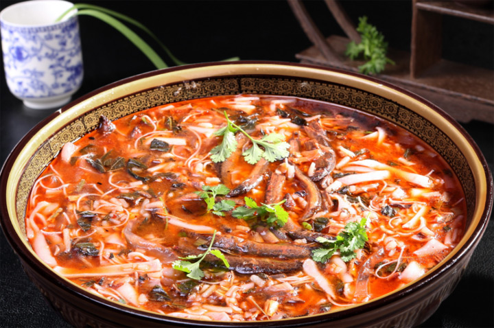 泥鰍湯,其實是一道讓人眼花繚亂的大雜燴燉湯。紅彤彤的湯汁裡,除了鮮美的泥鰍,還有莧菜干、土豆絲、筍乾、地瓜、粉絲等十來種配菜,既能當主食,又是非常好的下飯菜。