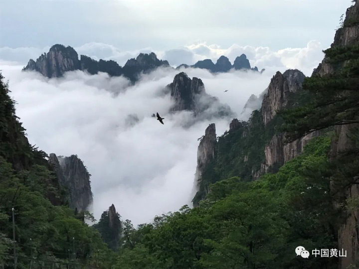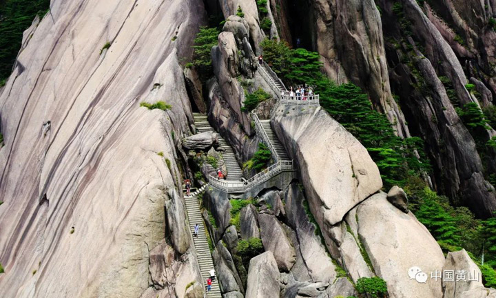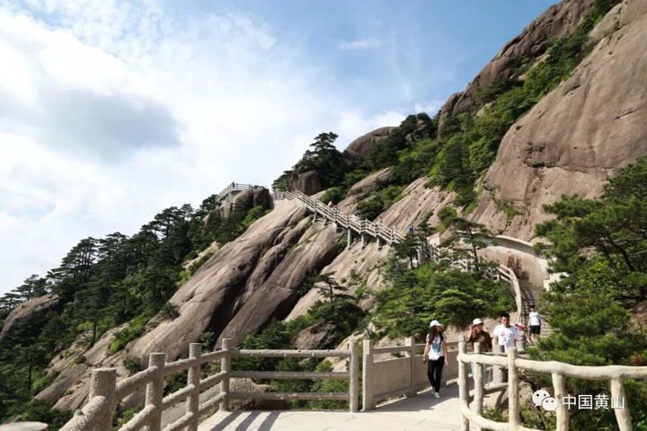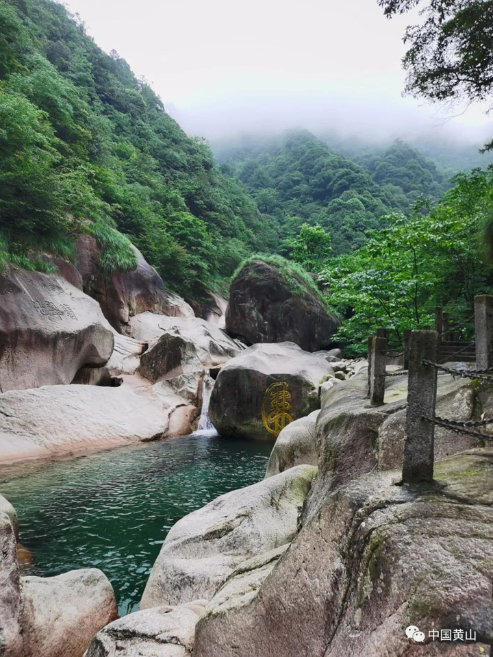 腳下的路若是讓你那顆躁動的心逐漸平復下來,那眼前的景則會讓你融入到綠意盎然的海洋中,領略到夏的清涼。黃山屬於亞熱帶季風氣候,植被覆蓋率高,加之景區重視對於自然生態的保護,山中遍佈奇松灌木,濃蔭蔽日,沁人心脾,身在這天然的氧吧裡仿佛置身於世外桃源。漫山的翠綠掩映著泉水,聽泉有聲也忘卻了煩惱。