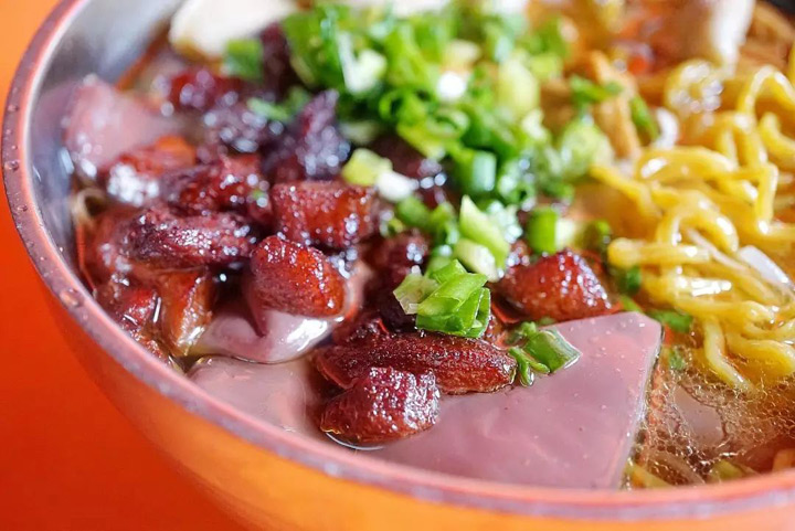 腸是肥腸,旺是豬血,面是加了雞蛋特製的脆麵,貴州人獨愛這種脆脆的口感,紅湯清亮不膩口,加脆哨。走進麵館,耳邊都是呼哧呼哧埋頭吃麵的聲音。