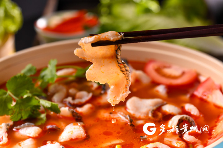 番茄貴州叫“毛辣果”,但是酸湯魚的原料是野生的小個番茄,搗爛然後放在罎子裡發酵。煮的時候,舀上一大勺,用油炒下更香,加水開鍋之後放入魚,一鍋酸之味扎扎實實地在你眼前“咕嘟咕嘟”的。吃過了酸湯魚才叫一隻腳真的踏進了貴州!