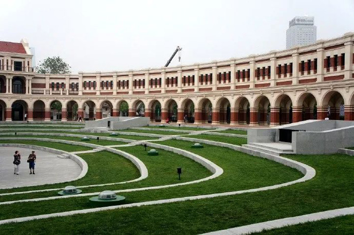 民園廣場——鹿晗電影《重返二十歲》的拍攝地,也是“五大道”地區標誌建築!整個建築為橢圓形外觀,歐式走廊和大型下沉式廣場自成風格。