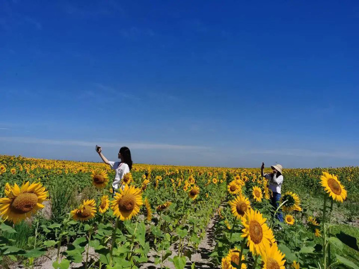 小道兩邊開滿了向日葵,在這片“陽光的海洋”裡踮起腳即可輕觸陽光,您可以帶上大朋友、小朋友漫步在小道上,徜徉在花海中。