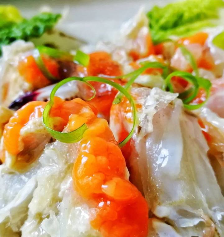 生蟹的名菜有江蟹生、紅膏嗆蟹,大同小異