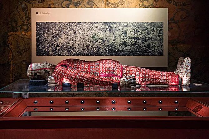 收藏於西漢南越王博物館的絲縷玉衣,為西漢時期文物,是南越文王趙眜下葬時穿在身上的衣服,是我國迄今所見的年代最早的一套形製完備的玉衣。